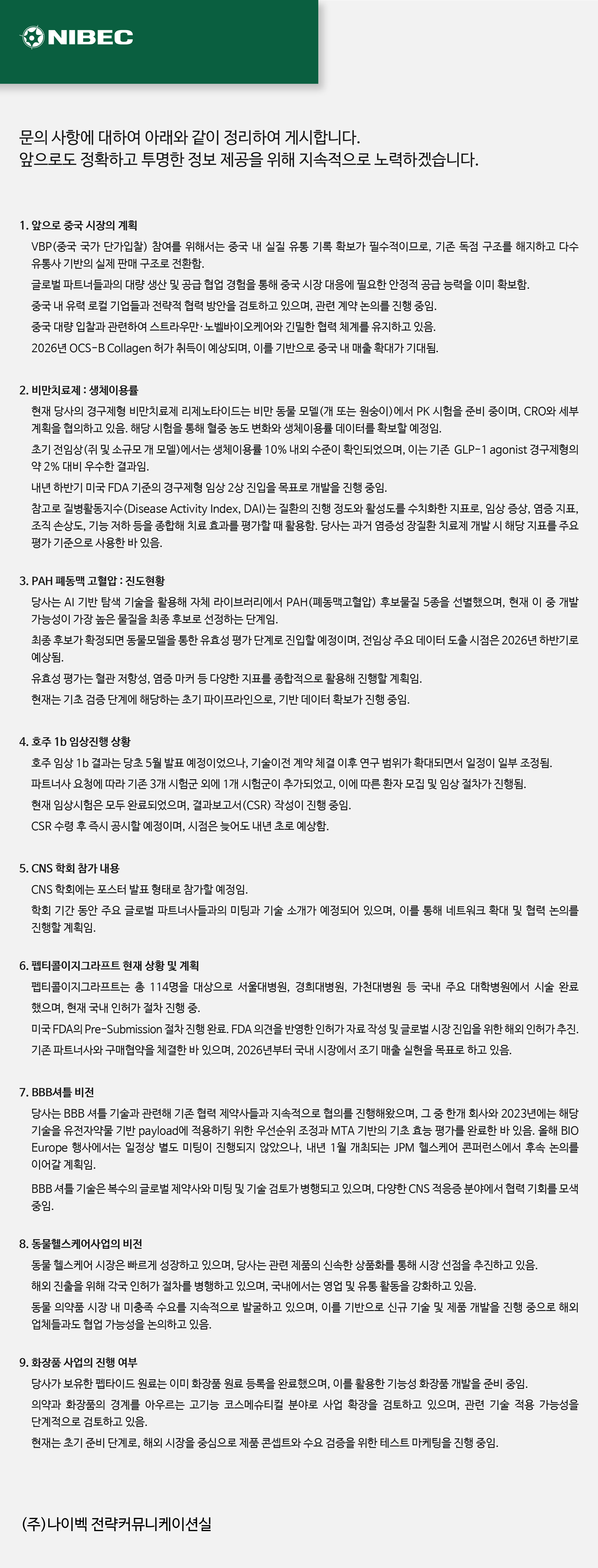 NIBEC 12월 정기 IR 개최 안내